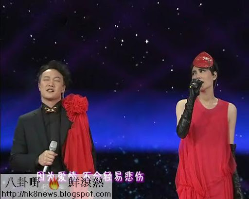 春晚高潮則是歌王陳奕迅和天後王菲同台和唱<因為愛情>,陳奕迅穿著黑西裝、紅襪,別上大紅胸花,帥氣又喜氣;王菲濃妝豔抹一襲大紅禮服上陣。王菲緊張稍稍抖音,但音色依舊甜美;陳奕迅保持過往實力,渾厚嗓音魅力無敵。