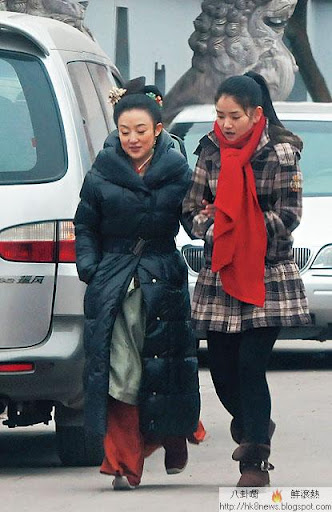 由朝跟到晚,大眼女助手還不時陪劇中女演員去洗手間,身邊人也照顧周到。