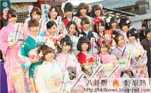 高人氣團體AKB48與姐妹團SKE48總共19名新成人,參與了1月10日的日本成年禮儀式。柏木由紀、高橋南、板野友美、前田敦子…等19名成員都身穿和服一同出席亮相,模樣相當可愛,台下已經有不少粉絲,看得如癡如醉了。