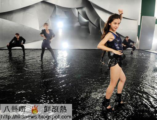Angelababy在廣告裡,穿著一身黑色蕾絲緊身上衣,和超迷你火辣皮褲,腳踩三吋半性感高跟鞋入鏡,她覺得非常有自信,一點都不會害羞。而由於廣告畫面需展現「水感」,於是導演安排Angelababy在3公分的積水中與舞者共舞。雖然拍攝過程達6個小時,Angela baby依然露出敬業笑容,還自創一套舞步,笑說:「這是專屬於我的QQ舞!」