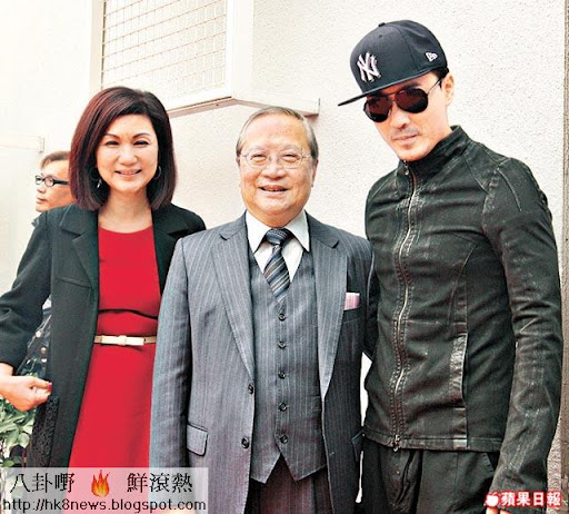 (左起)樂易玲、梁乃鵬和林峯昨日為 Sky Zone進行啟用拜神儀式,其中樂易玲力撐林峯攞金曲金獎。
