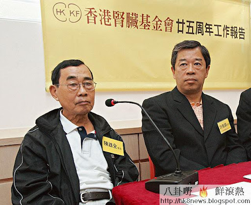 許廷鏗父親許義鏞(右)有指靠炒樓起家,身家豐厚,積極參與公益事務,是香港腎臟基金會副主席。