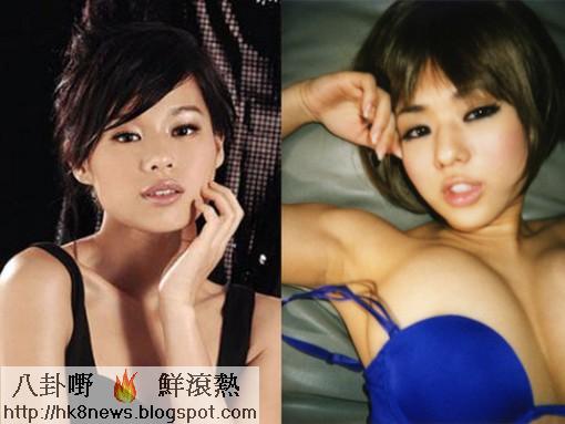 胡杏兒(左)長相神似AV女優蒼井空,不少人稱他為港版蒼井空。(圖/翻攝網路)