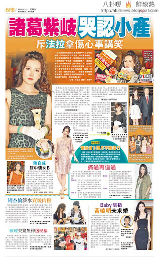 曾默認去年已在外地簽字註冊結婚的諸葛紫岐(Marie),昨日左手無名指戴上疑似婚戒,一雙手腕更有多串佛珠鏈,懷疑助她保平安。甫現身會場的她已經眼泛淚光,狀甚悶悶不樂。當嘉賓介紹展覽環節有關古人求子慶生的習俗文化時,觸景傷情的Marie終控制不住哀痛,淚灑當場。之後接受訪問時亦數度落淚,昔日她的樂天笑臉已蕩然無存。記者直問當事人小產是否屬實?她輕聲地答﹕「是真的!不開心的事不想再講。待完成手頭上幾個工作,就會休息放假,調養身體。」