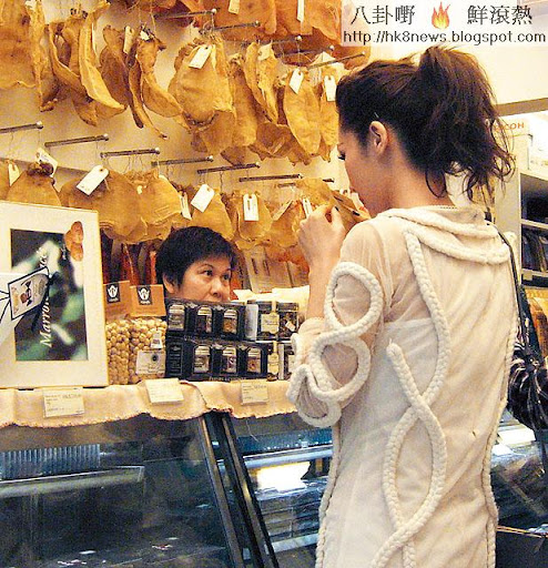 關心妍亦聽曬老公話,日前在公司同事陪同下,坐保母車到中環專賣富貴食品的有食緣入貨買花膠,在店內逗留唔夠二十分鐘,已經大包細包,之後又問店員要了幾隻價值六千多元大花膠,才碌咭俾錢走人。