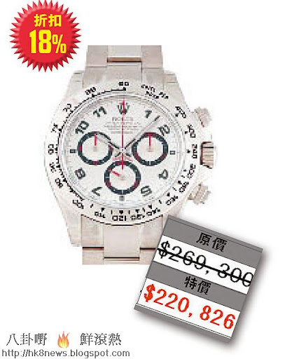 寇鴻萍的「喵擊」購物網除有藝人親筆畫出售外,還有名牌錶如勞力士、卡地亞、Panerai Franck Muller等出售,聲明全是新貨,亦有保養書及出世紙。記者向一般錶行查詢,發覺網站名錶標價與市面錶行相若,勞力士一般有九折,但Daytona得九五折, 而「喵擊」卻有18﹪的折扣價優惠, 價錢較低。