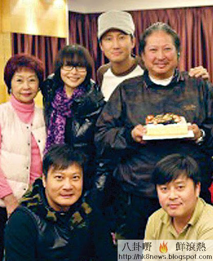 感情愈見穩定,今年一月錢嘉樂(左下)帶埋女友湯盈盈(左二)出席洪金寶生日飯局,湯母(左一)亦一起出席,實行一家親。