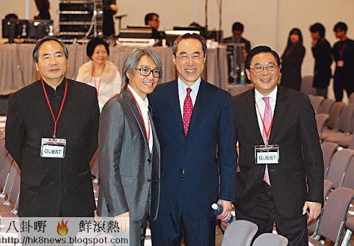 其他嘉賓未到,星爺已經仆到去會展撐唐唐場, 仲有份同前經濟發展及勞工局局長葉澍堃(左一)等猛人拍短片, 俾足面嘞!