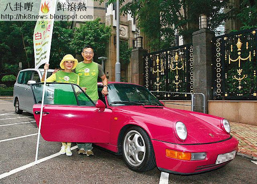 選舉當日,白姐姐和阿Paul穿綠色戰衣,出動桃紅波子跑車上街拉票。