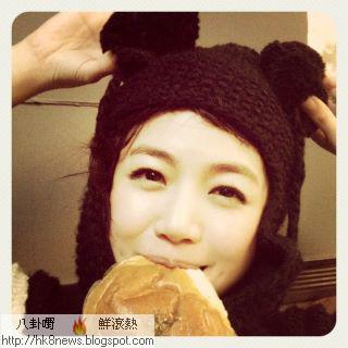 • 陳妍希戴著造型毛帽咬麵包的樣子萌到不行!(圖/截自陳妍希微博)