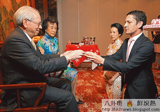 十月一日同初戀男友Johannes响意大利佛羅倫斯完婚嘅莫文蔚,星期日(十二月十八日)終於返嚟香港補擺喜酒。一對新人當日早上到中環文華東方酒店套房,向無去到意大利睇個女出嫁嘅莫爸爸跪地斟茶,到咗下午,就移師到大潭美國會舉行結婚派對。