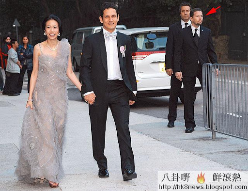著上全球獨一無二嘅Escada灰色晚裝,莫文蔚再戴上由華籍珠寶設計師 Cindy Chao提供嘅鑽飾現身,一身打扮貴氣逼人,新娘子更請嚟五名西裝bodyguard護航,其中一個仲係陳振聰昔日嘅貼身保鑣James Bryce。想當日陳振聰以年薪過百萬由英國請James嚟香港保護自己,呢位金牌保鑣擅長反恐、反間諜及自由搏擊,但自從陳振聰爭產官司敗訴,James同其餘六位保鑣慘食無情雞,家陣為搵食逼住轉行保護明星,都算大才小用。