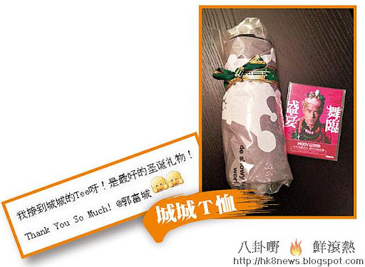 陳敏之平安夜同好友黎諾懿一齊去睇郭富城演唱會,仲搶贏兩萬觀眾成功拎到「城城tee」,敏之即時post上微博話呢份係最好嘅聖誕禮物。原來得到自己努力搶番嚟嘅聖誕禮物,會特別開心。