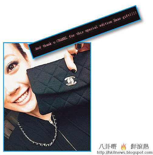 剛剛喺廣州飛返香港過節嘅容祖兒都算收穫豐富,除咗有好友送頸巾之外,最勁係收到Chanel送嘅特別限量版手袋仔,個袋最少值3萬,真係恨死人!祖兒亦好識做,攰到雙眼紅曬都笑曬影相post上網,幫人賣吓廣告都要啦!