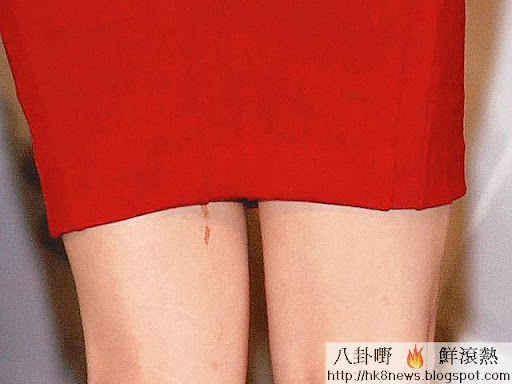 話說上星期,佢出席一個時尚活動,唔使講梗係打扮得靚靚啦。因為條裙好短,所以上台時,佢為防走光,就好謹慎咁用手冚住裙腳,可惜當佢轉身時,竟然俾眼利嘅記者到佢髀罅有一條血痕。咦,俾人傷?定係親戚嚟咗唔知呢?唔,呢條血痕嘅來歷,認真耐人尋味。 ####