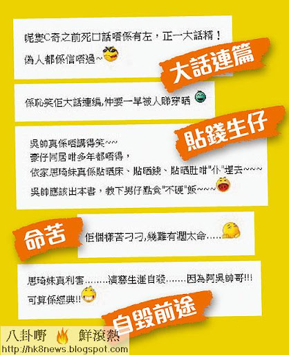 對於身懷六甲的楊思琦,被傳媒在L.A.拍到大肚真身,本刊向思琦前度男友李泳豪問及此事,他得知舊愛懷孕的事實,顯得甚無奈。忽:仲有冇同思琦聯絡?豪:好耐都冇聯絡……啱啱睇咗啲相,內文未睇,有啲愕然。忽:你同思琦一齊時,其實佢已經同吳帥發生咗關係?豪:唔想再講以前啲嘢,相都出埋喇!呢件事要畫上句號,都已成事實。忽:如果思琦需要你,你會唔會再幫佢?豪:初初發生時我都講過,佢有啲咩要我幫,我能力範圍內一定幫。忽:佢背住你咁樣做,有冇影響你拍拖識女仔?豪:我未ready。忽:係咪驚咗唔敢拍拖呀?豪:始終我都會拍拖嘅,不過依家仲未ready。忽:你係咪覺得思琦喺L.A.好唔開心呀?豪:係,我第一個感覺真係覺得佢好落寞、好無助咁,我對咗佢咁多年都會感受到,睇到有啲唔舒服。忽:吳帥被指欠債,黐飲黐食,依家思琦仲要屈就喺阿哥度生仔,你覺唔覺得輸俾吳帥好唔抵?豪:冇嘢講,唔想再討論,都發生咗,嬲又好、唔開心又好,始終一個女人結婚都係佢揀。佢開心就得,呢個係佢決定。