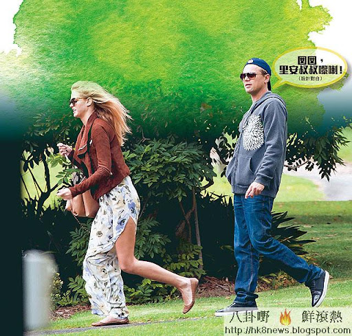 你當戲睇又好,當笑柄又好,里安一於少理繼續集郵。早前佢喺澳洲拍攝《小城大亨》時,被指搭上當地兩嫩模。點知櫈都未坐暖,轉個頭,里安已被目擊攜新女遊公園。據知新女叫Erin Heatherton,芳齡22,比「花邊教主」再小兩歲,夠曬嫩口。加上身材高䠷,金髮、長腿並重,而且仲係著名內衣Victoria's Secret禦用model,啱曬里安口味。就當日所見,里安同新歡漫步悉尼公園。雖然兩人冇親密動作,但不時喁喁細語,男方仲輕撫女方玉背,相當sweet sweet。不過及後兩人發現記者,Erin即拔足狂奔,一邊走仲一邊露出招牌長腿,完全不顧儀態。