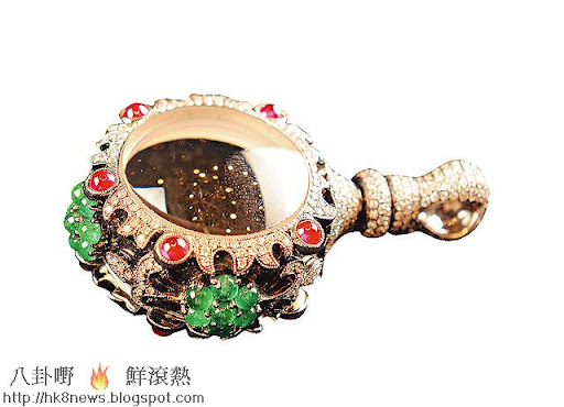除了擺件,Cally亦設計了不少鑲鑽的富貴日用品,包括她手上這個鑲了16.21卡紅寶石和5.67卡鑽石的香水瓶。
