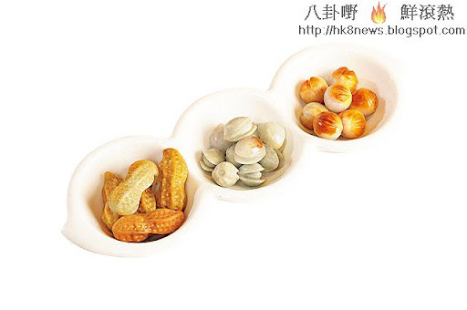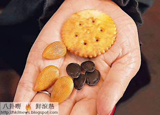 大豐收這個「大豐收」果仁盤,鄺美雲花了大半年時間才儲齊,她手上捧着的黑玉瓜子,黃玉果仁幾可亂真,而Cally最喜歡就是黃玉製的芝士餅(小圖上)。