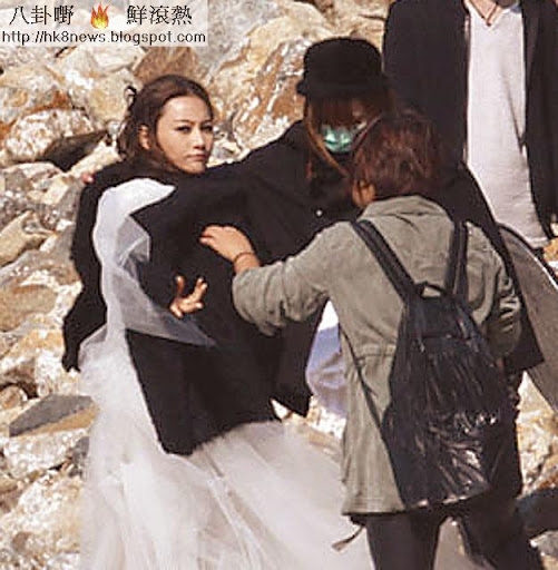 當日看似相當疲累的張馨予到達南灣,更換拍攝服飾後,發現有記者在車外徘徊時,竟然玩嘢唔肯落車,要記者離開才肯下車影寫真。穿着婚紗的張馨予,在南灣石灘旁擺出多個甫士,兩小時後便轉場景離開。她離去時,顯得頗為乏力,上落樓梯更要助手攙扶。