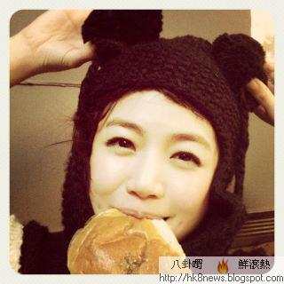 ▲ 陳妍希在微博上傳可愛咬麵包照,超萌!(圖/截自陳妍希微博)