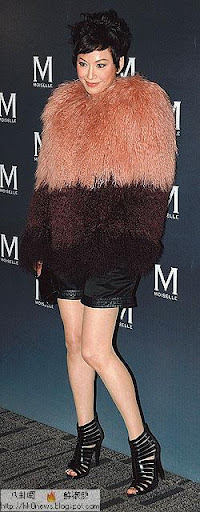 鐘錶女皇胡敏珊不時以毛毛點綴配襯。「屋企都有唔少fur,我覺得black and white係今年嘅Hot items。」早前胡敏珊卻以全黑打扮,再加上棗紅色毛毛,亦令人眼前一亮。