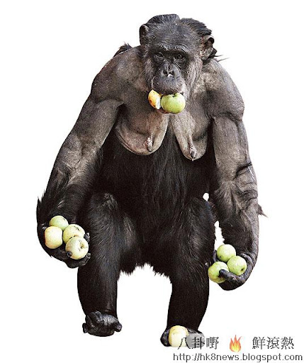 跳到齜牙咧齒、兩手低垂過膝,一舉一動充滿「猩」味。台灣圖片