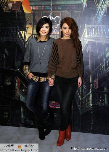 ▲Ella(左)與Hebe手牽手一起看展,避談馬來糕先生。(記者林調遜/攝影)