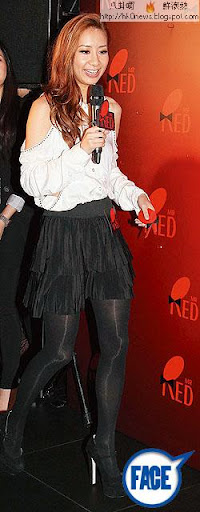 平日打扮斯文嘅詩雅,今次以豹衫加豹鞋示人,加隻手套,幾潮。不過略嫌束上頭髮唔好睇,放長髮更好。