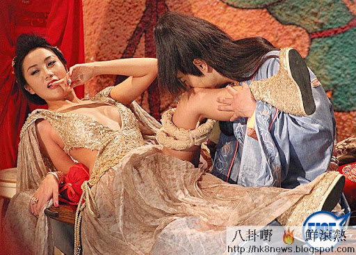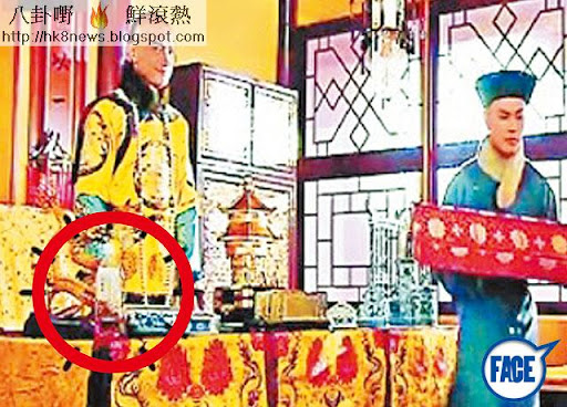 台慶劇《萬凰》,烏龍茶(紅圈)出現喺清朝宮殿中嘅穿崩鏡頭,成網民笑柄。