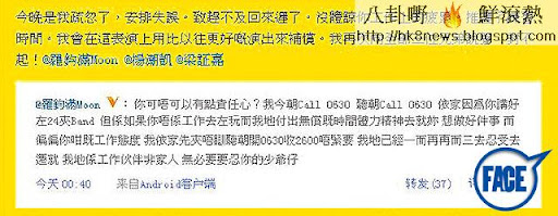 張景淳於微博道歉,不過羅鈞滿似未接受並說:「我唔係話佢呀!梁証嘉都有遲㗎!」
