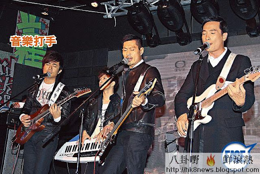 陳建文(左一)除咗在戲外作結他指導兼演奏外,而且仲有唔少作品如〈I Can't Love You〉等,在戲中由陳豪彈出添。