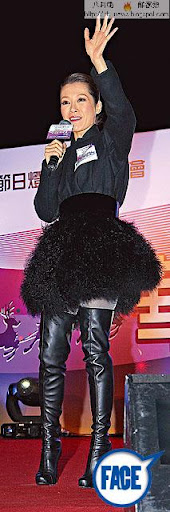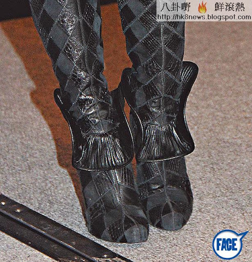 今季最興呢款slim cut over the knee長boots,Jade以黑色羽毛裙配boots,搶眼又夠潮。